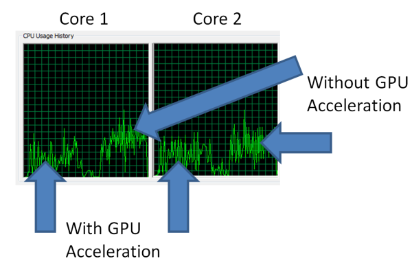 The screen shot below is from a chapter in my book that shows a piece of XAML layout that was GPU accelerated. As you can see, GPU acceleration does free up noticable CPU resources.