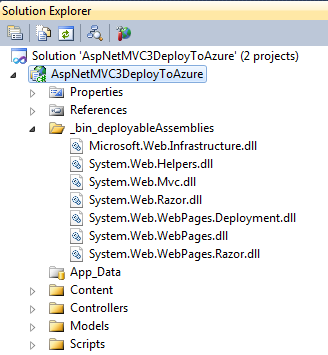 - In the ASP.NET MVC 3 Tools Update Microsoft provides a very easy way to add all the required ASP.NET MVC 3 assemblies automatically for bin deployment. (thanks to Mike Brown from http://azurecoding.net/ for pointing this out).
