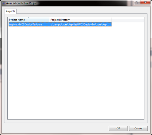 - In the "Associate with Web Role" dialog, click OK (as we only have one available project)